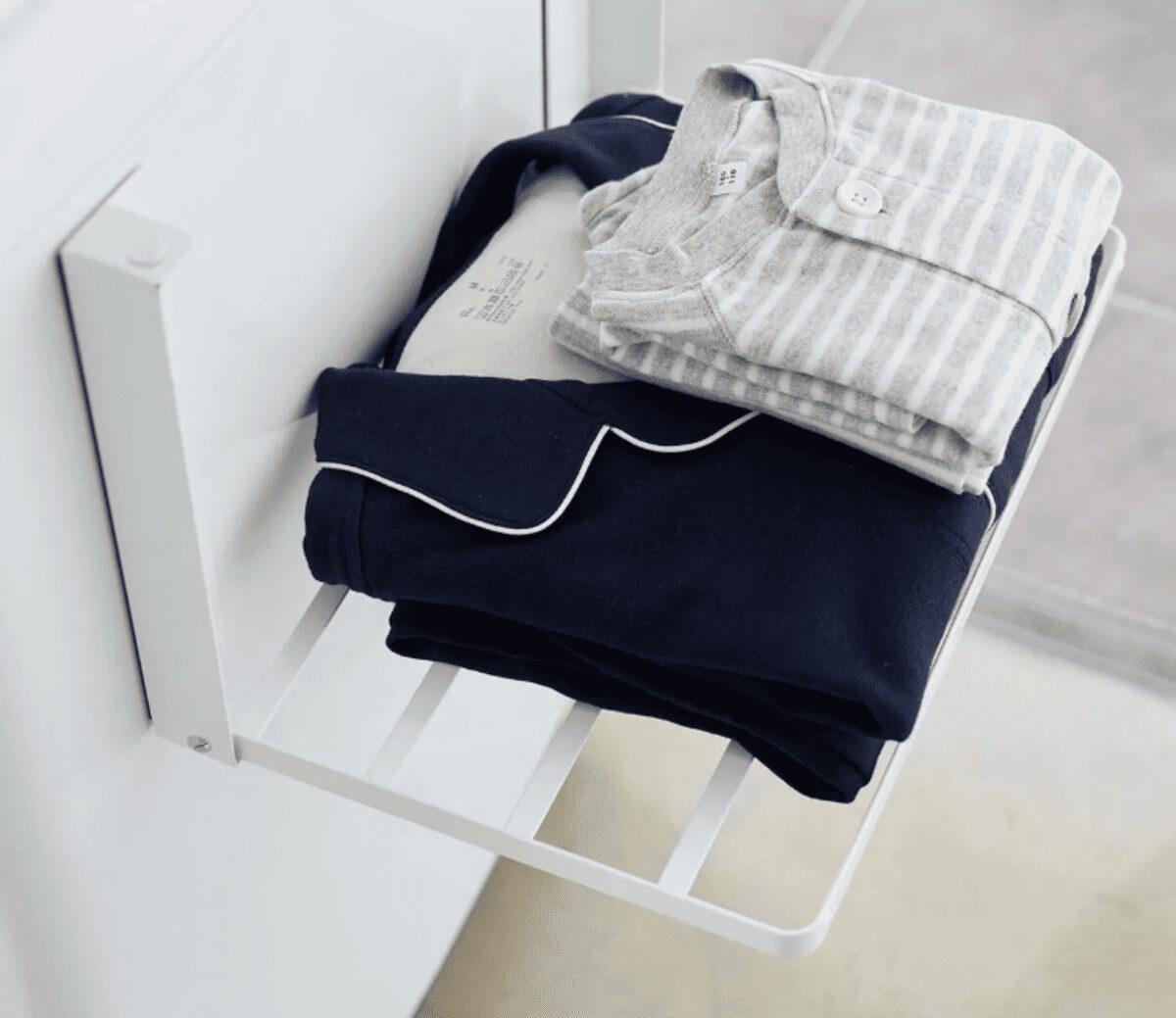 強力なマグネットでしっかりと固定できるため、分厚いスウェットなどをのせても安心。あまり重たいものを置くと落下するという声もありますが、耐荷重に注意すれば問題なく使用できます。